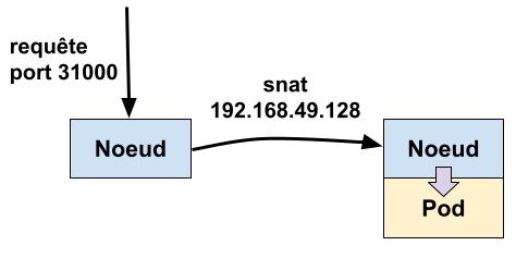 192.168.49.128 n’est pas l’IP de ma machine cliente mais l’IP interne du noeud ciblé. On voit donc que Kubernetes a remplacé l’IP source de ma requête Kubernetes par l’IP du noeud, l’IP source étant définitivement perdue.